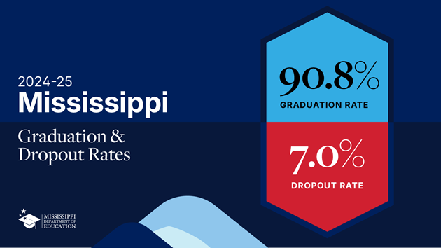 JACKSON, Miss. – Today, the Mississippi Department of Education (MDE) announced the state’s 2024-25 school-year graduation rate is 90.8%, and the dropout rate is 7%.